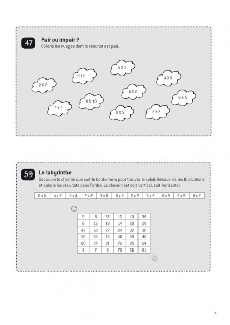 47. Colorier pair ou impair : colorie les nuages dont le résultat est pair (des multiplications).