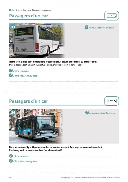 Les exercices sont mis en scène pour que l’enfant se sente plus directement concerné. Nous espérons aussi qu’il trouvera autour de lui, grâce à ces situations concrètes, des sujets de calcul volontaire.